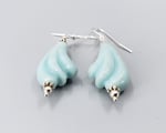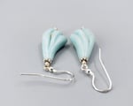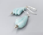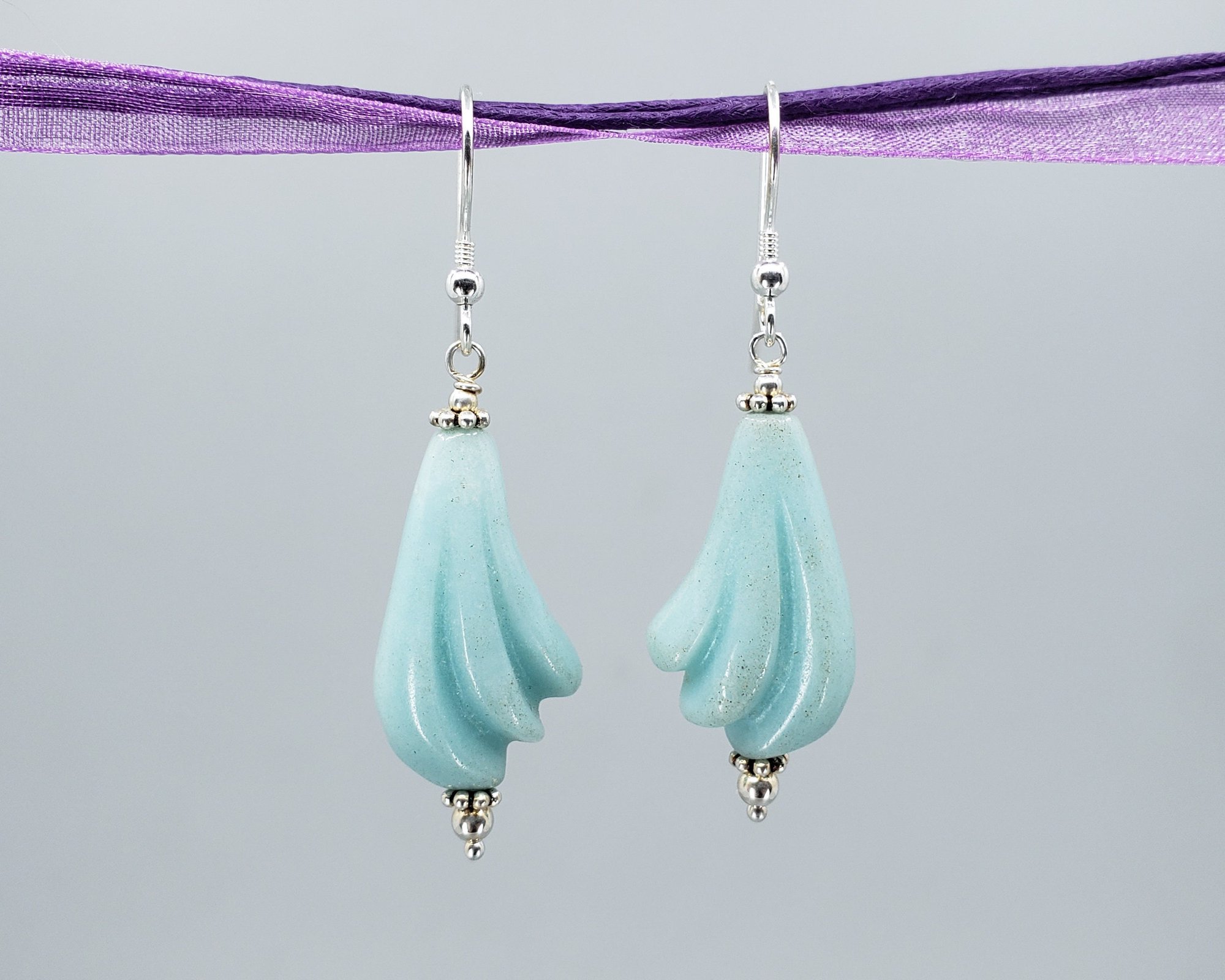 The Amazonite is a lovely light blue and is carved in a flourish or swoop shape. **Please note, these weigh a little more than most earrings; each earring weighs approximately 4 grams, which is a little less than the weight of a nickle (4.9 grams).**