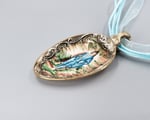 To make the pendant, I cut the bowl and handle off the spoon, grind and polish the cut edge smooth and then carefully bend the shank to make a bail. Since this is a real vintage item, there may be areas where the plating is worn, a few minor scratches and scuffs, or some minor chipping and crazing of the enamel. Consider it part of its vintage charm!