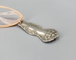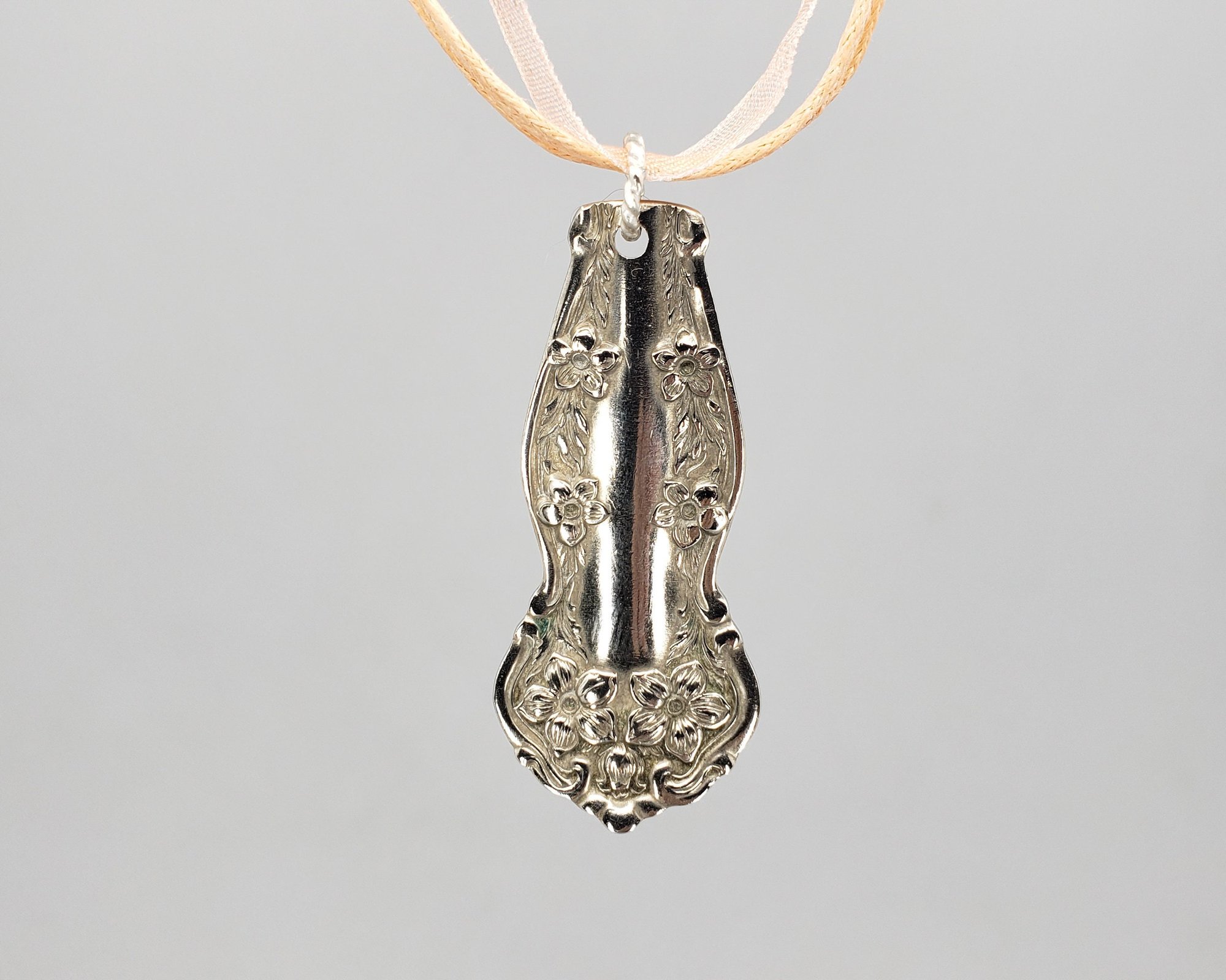 This pretty pendant is made from the handle of a piece of vintage silverplate flatware.