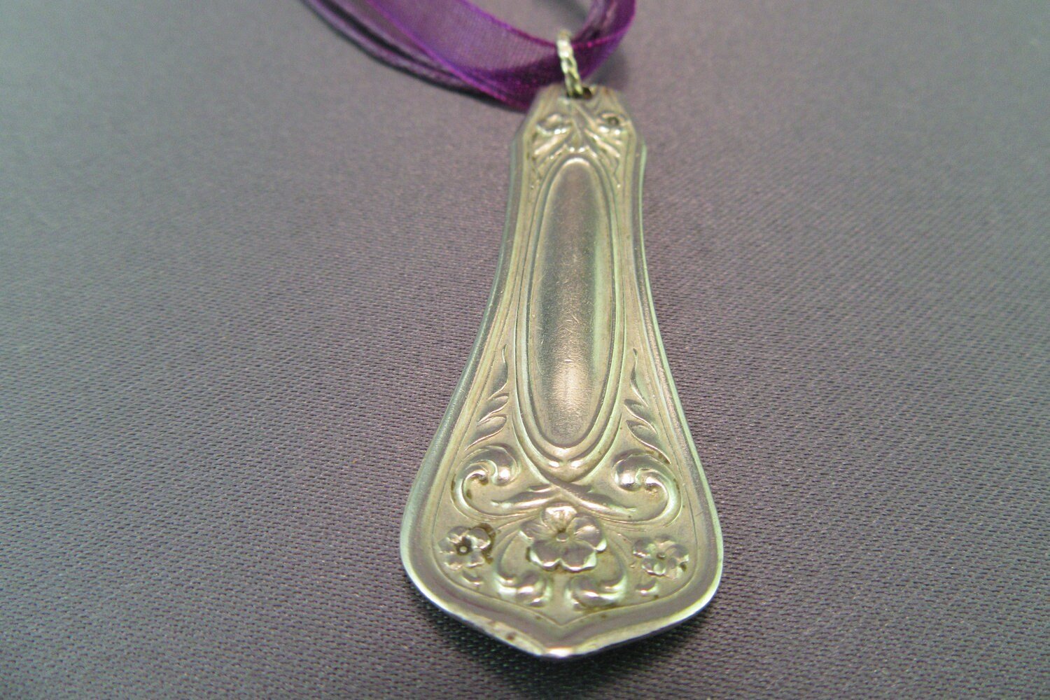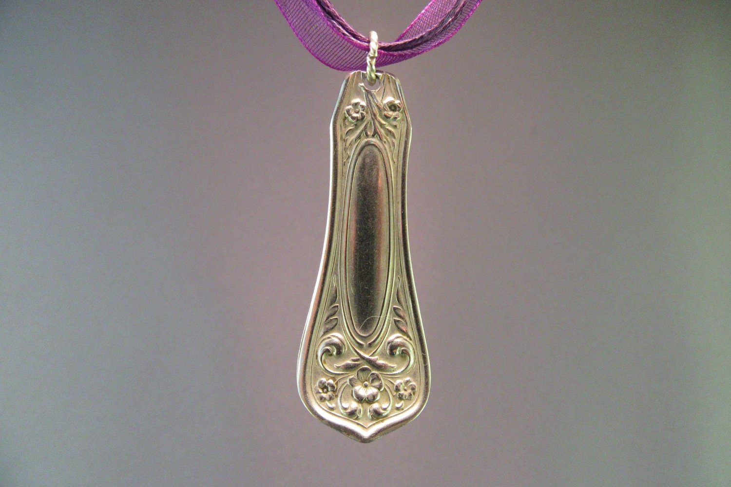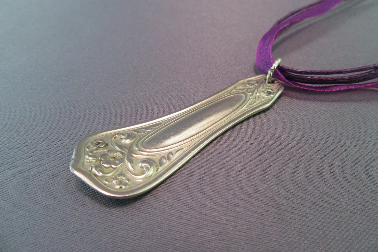 This adorable pendant is made from the handle of a vintage silverplate fork.