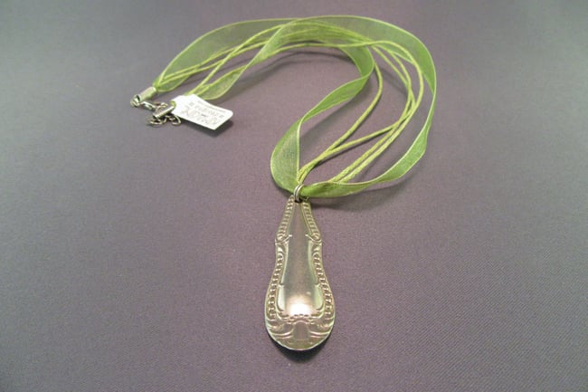 This adorable pendant is made from the handle of a vintage silverplate spoon.