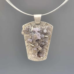 Spoon Pendant with Tumbled Smoky Quartz Chips, Vintage Silverplate Teaspoon - K0184